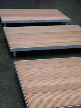 | |  Stage elements, bankirai/galvanised steel III |  Vitanas trade fair stand ICC Berlin 2008