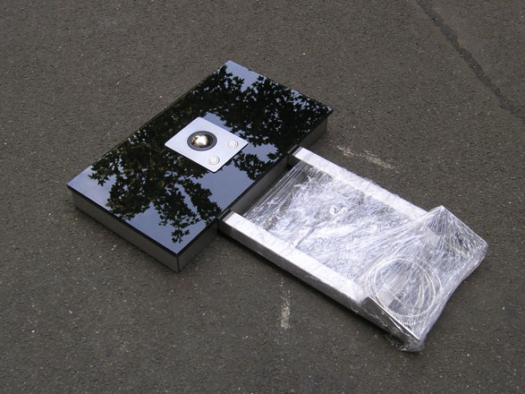 | |  Wall padding Lorica, Das Werk, Berlin |  steel/glass desk; private ownership |  Steel water light object I |