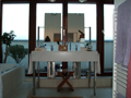 | |  Exklusiver Tisch mit Aufnahme für einen Sonnenschirm |  Gartentisch Edelstahl 2,5 x 2,5 Meter |  Gartentisch Edelstahl Sonderanfertigung |