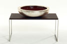 | |  Tisch mit Schale |  Tische, Stahl und Glas |  Vitrine und Bank |